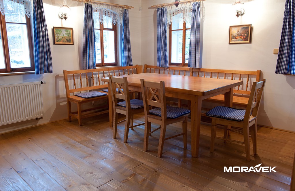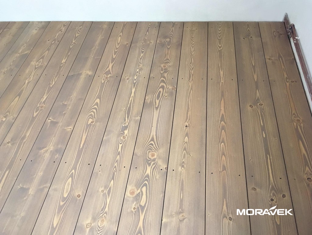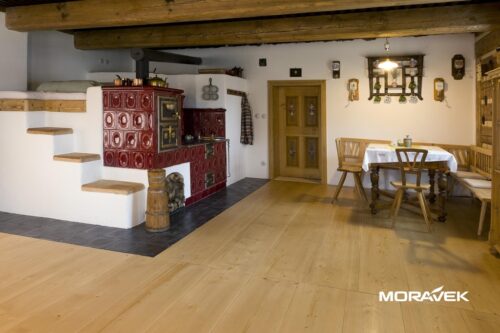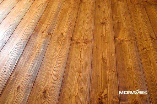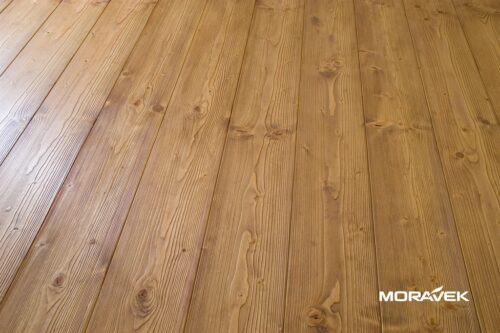 Varianty podlah P02, P03 mají od začátku přiznanou 2–4 mm spáru, každý kus může samostatně pracovat, tudíž snese větší rozptyl vlhkosti prostoru. I proto jsou více vhodné pro vaše rekreační objekty, kde se topí jen občas, jsou zde špatné izolace, a tak se vlhkost značně mění. Velikost spáry si můžete zvolit dle vašeho uvážení a vkusu. Tímto malým technickým detailem snadno vytvoříte efekt staré, rozeschlé podlahy, která je přitom ale velmi kvalitní, odolná a má rustikální patinu pro každý váš interiér.