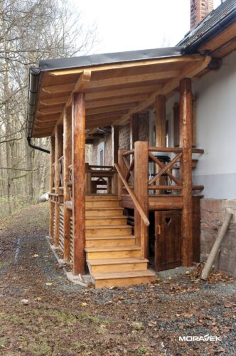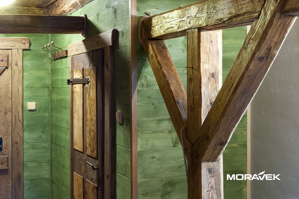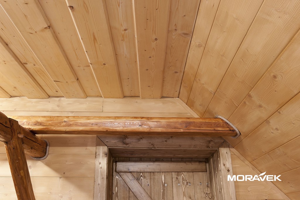 Pro novodobou chaloupku v tradičním stylu jsme připravili rozsáhlou dodávku kvalitního materiálu – obklady venkovních štítů, obklady stěn a stropů, podlahy i materiál na výrobu dveří.